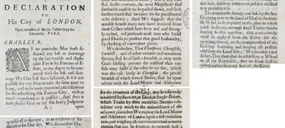 The Great Fire of London was a calamity in the early years of Charles II’s reign, and it changed people’s lives irrevocably. The city was devastated, and suspicion of who began the fire inaugurated a host of complex religious, political, and social issues that Charles II and his government had to contend with. This collection also reveals the wealth of information to be found in the state papers at The National Archives that shed light on this crucial event in English history, and shows us the reactions of individuals from across the social spectrum, from the king to people who lost their homes and possessions in the fire.