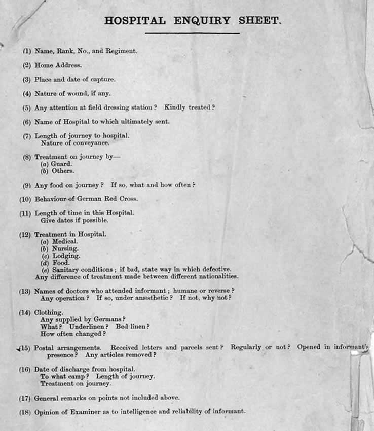 Click on the image to the right to see an example of a hospital enquiry sheet found in a report.