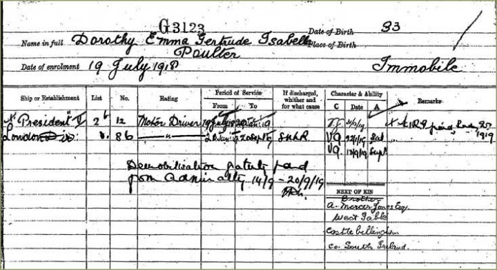 The service record of Dorothy Poulter shows that she enrolled as a motor driver on 18 July 1918. View an extract below.